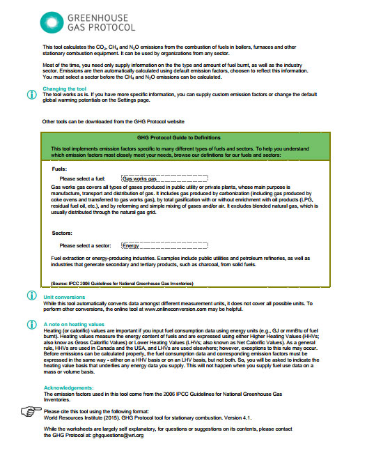 GHG Stationary Combustion Tool