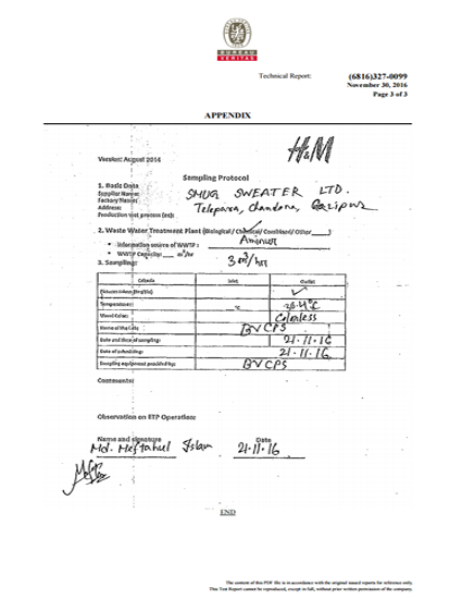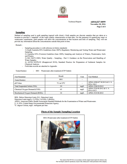 Smug Sweater Waster water (ETP Outlet) Test Report. Done by BUREAU VERITAS.